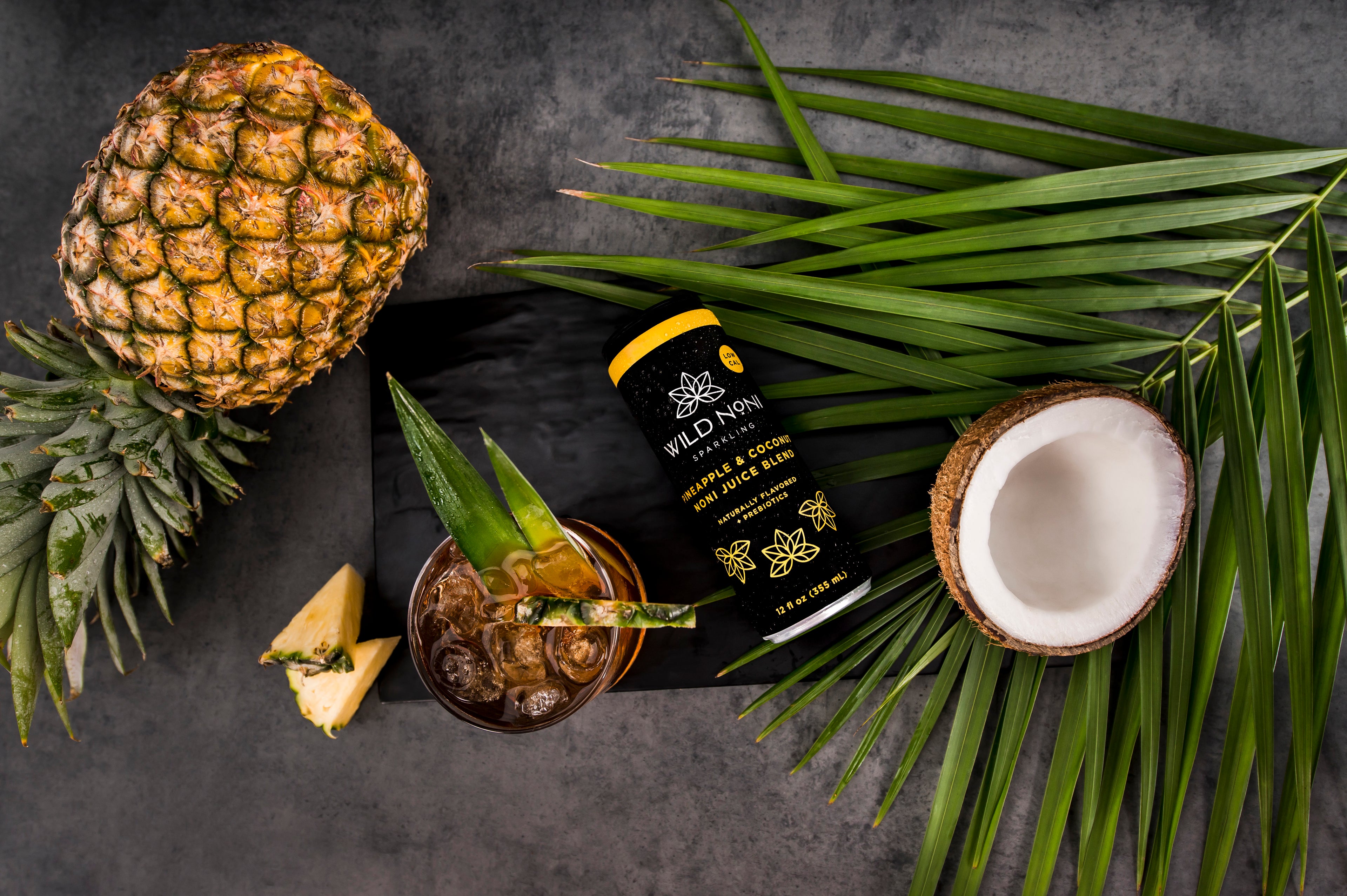 Discover the vibrant tropical taste of Wild Noni Pineapple & Coconut. The sweet zing of pineapple meets milky coconut blended with Noni juice, delivering a refreshing, sparkling hit.